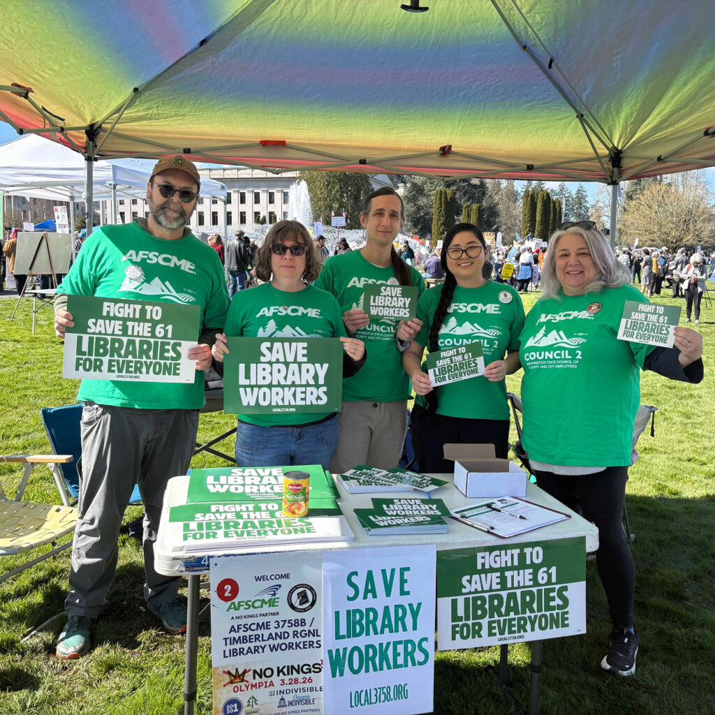 - Sign up for our mailing list to receive updates on opportunities to stand with library workers as we advocate for fair treatment and strong public libraries.